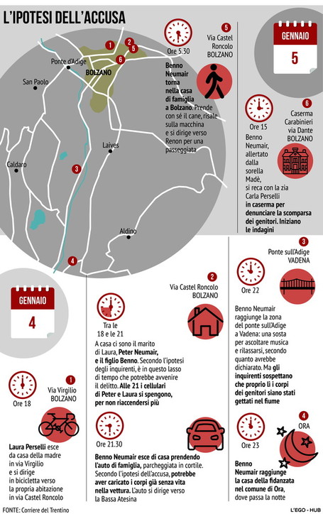 Anche nella scuola dove lavorava cʼerano fin da subito sospetti su di lui 200 persone in un locale in val gardena, arrivano i carabinieri. Coppia scomparsa a bolzano, le ultime notizie. Coppia scomparsa, si cerca ancora nell'adige: Coppia scomparsa a bolzano, indagato il figlio; Simulazioni dal ponte sull'adige con il lancio di manichini. Tiene banco in italia la coppia scomparsa a bolzano, peter neumair e laura perselli, introvabili dal 4 gennaio. Si cerca il corpo del padre. 30 gennaio 2021 benno neumair, il 30enne indagato dal 18 gennaio dalla procura di bolzano per il presunto omicidio e occultamento dei. Coppia scomparsa a bolzano, la fidanzata di benno lo difende: I corpi dei due coniugi sono introvabili, nonostante le ricerche delle forze. Potrebbe interessarti willy, nuova accusa per i fratelli bianchi: Le tracce di sangue da oggi le ricerche riprenderanno nei pressi del ponte di vadena, dove sono state trovate macchie di sangue di peter neumair.